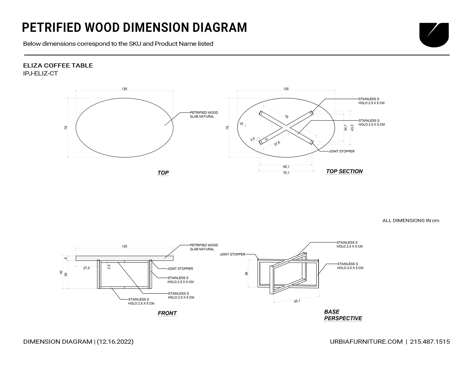 | Materials | Solid Natural Edge Petrified Wood Slice, Polished Stainless Steel |