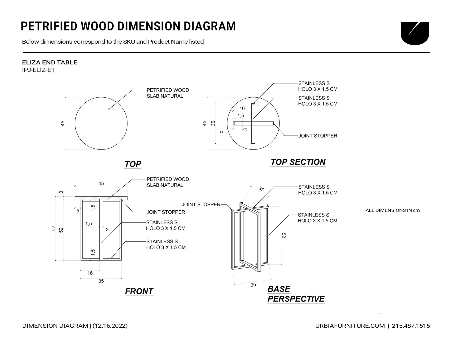 | Materials | Solid Natural Edge Petrified Wood Slice, Polished Stainless Steel |