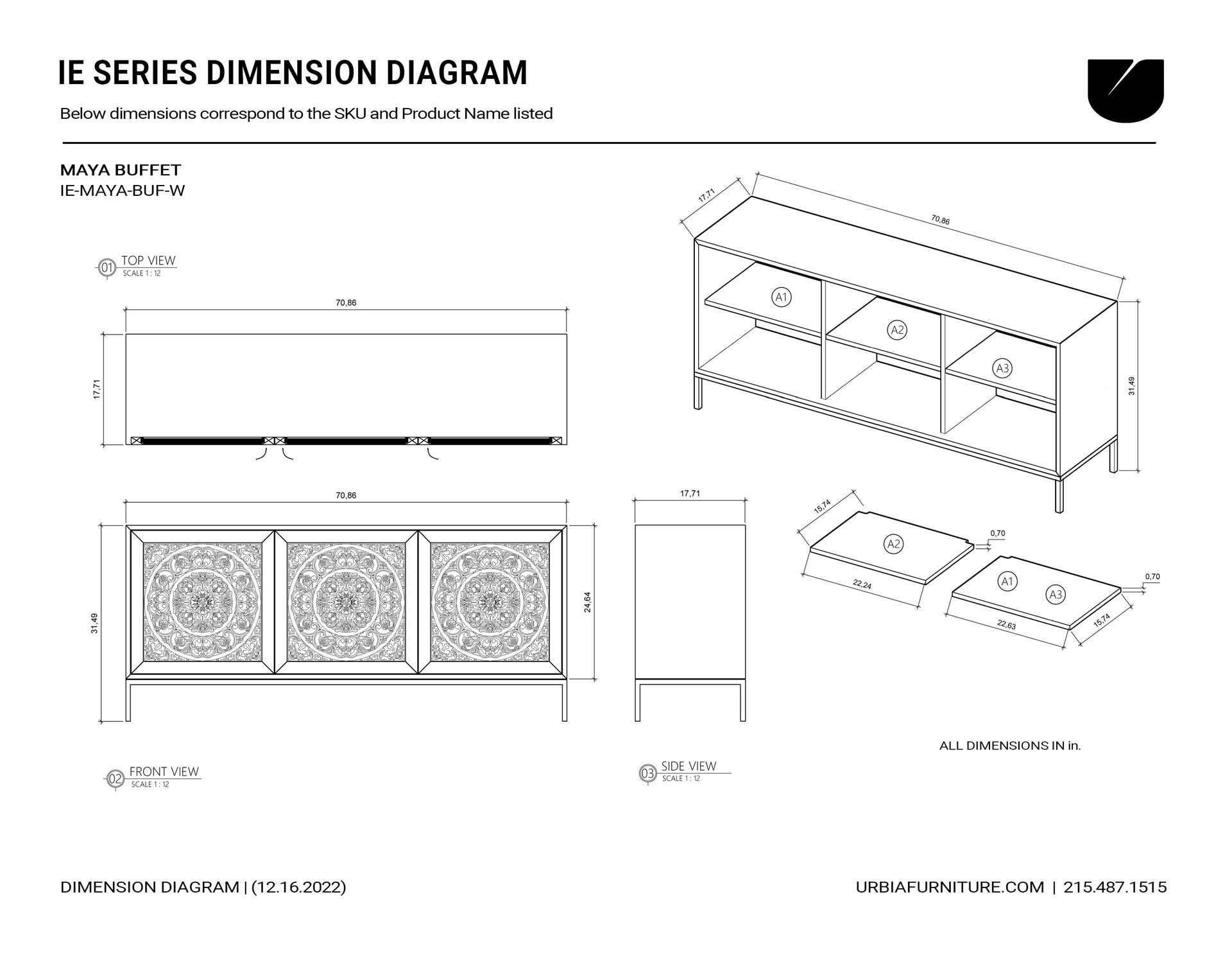 Overall Dimensions (in.) 71w x 17.75d x 31.5h
