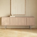 The Marrocos Buffet is a Brazilian-made gem that celebrates the beauty of simplicity. Designed to showcase the natural elegance of wood veneer, this buffet effortlessly captivates with its minimalist aesthetic. Resting on a delicate yet sturdy metal frame, it balances grace and durability. Boasting four cabinet doors, the buffet offers generous storage and organization options, making it an ideal choice for both living and dining spaces. Meticulously crafted by skilled Brazilian artisans, it reflects their commitment to exquisite craftsmanship.