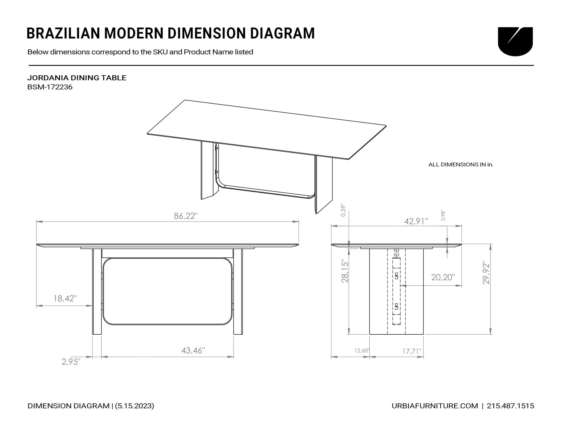 | Overall Dimensions (in.) | 86.5w x 43.5d x 30h |